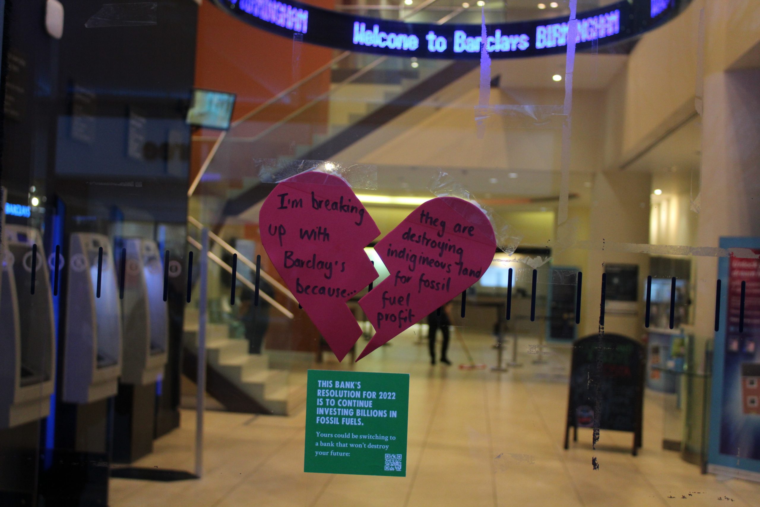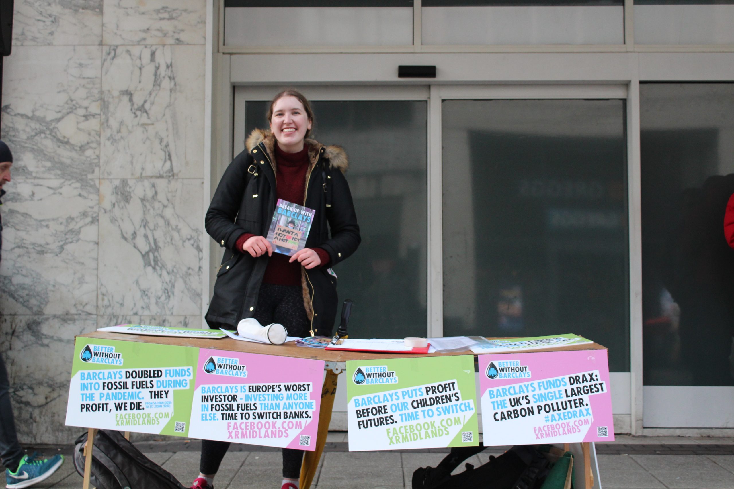 We made some noise outside Barclays this afternoon and had some great chats with people about why we’re breaking up with Barclays this Valentine’s Day. Brum Beats were there and we had a table with information about Barclays