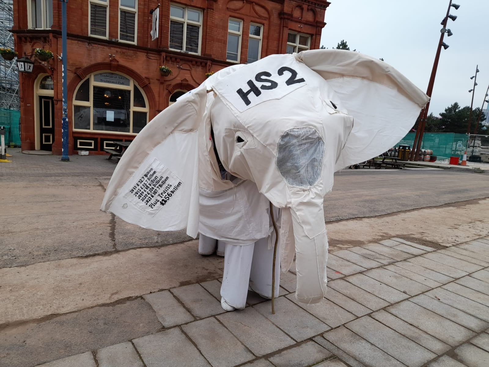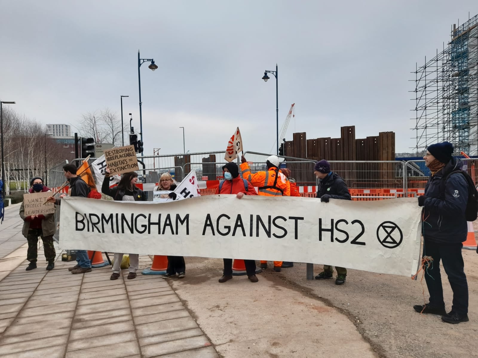 We joined with rebels from across the Midlands at Curzon Street, the site of the new planned HS2 station in Birmingham. The protest featured the HS2 ‘white elephant’, drawing attention to the enormous budget of this project which is destroying landscapes and using huge amounts of resources.